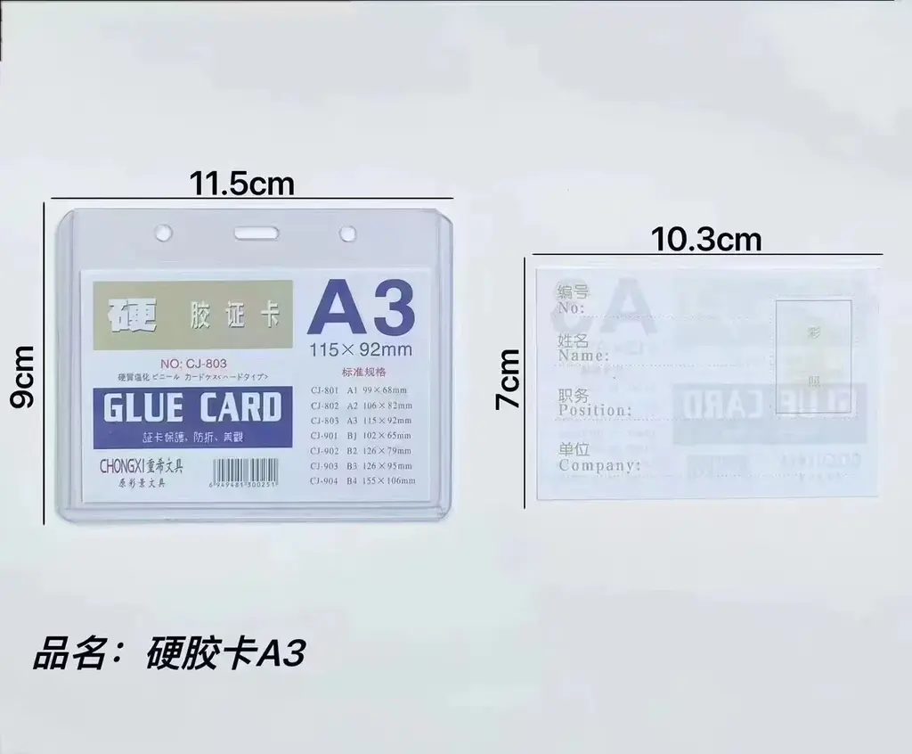 Chinese name: CJ-803-A3硬卡套-横-20C