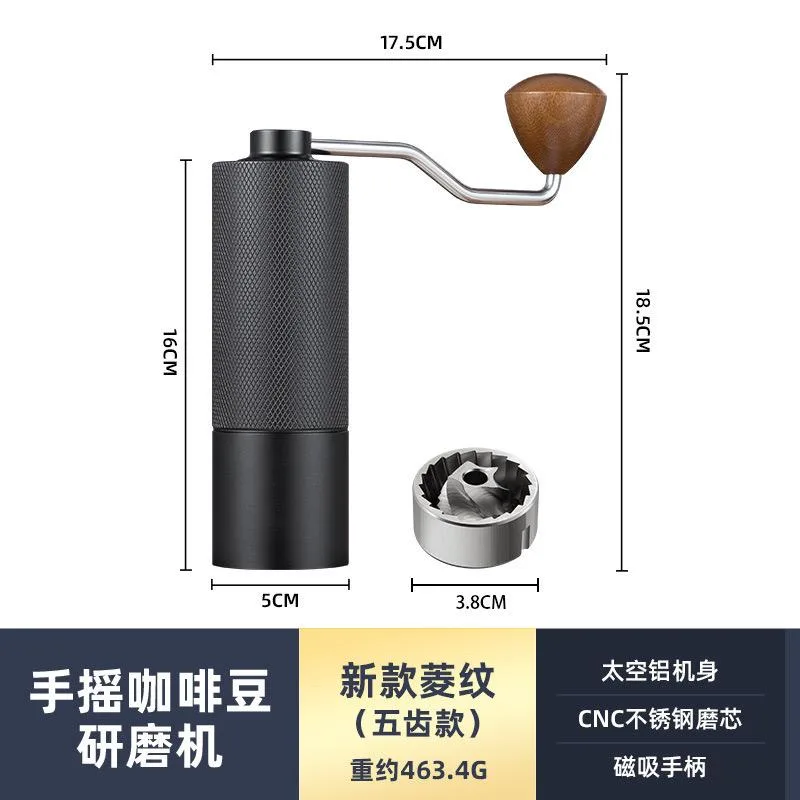 Overview: A hand-operated metal coffee grinder for fresh-ground coffee beans.