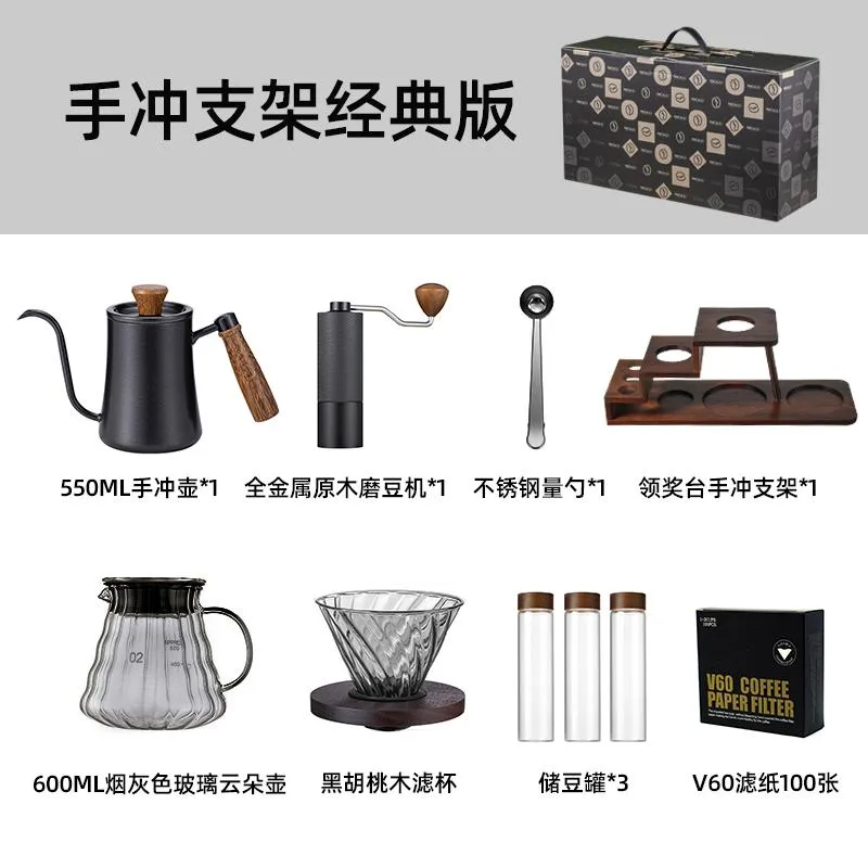 Overview: A complete hand-brew coffee set built around a metal stand and dripper.