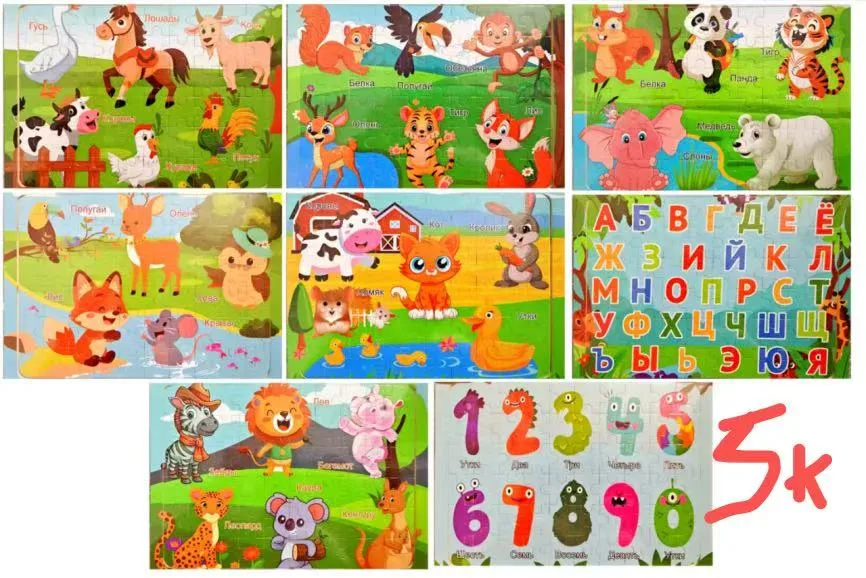 Chinese name: PZ016木制动物60片拼图俄语款