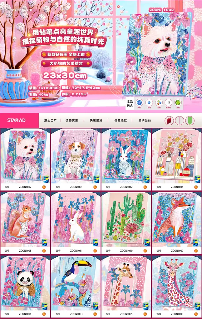 Chinese name: 秘密花园动物DIY绷框钻石画(混款)23*30